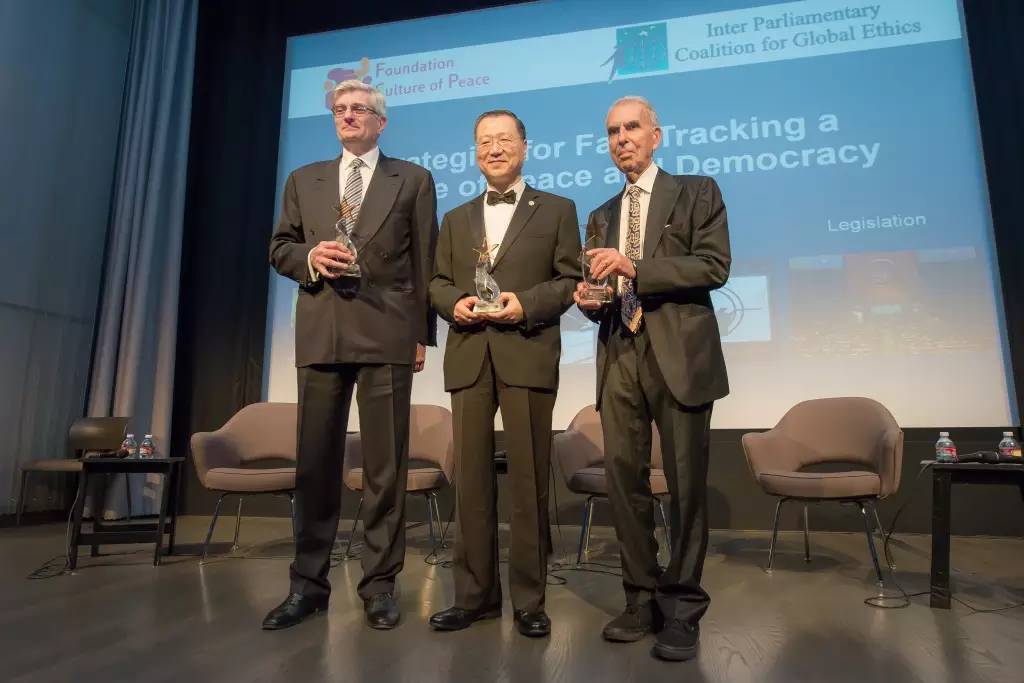 今天,卢台长作为世界著名的弘法大师、“世界和平教育大使”,在美国洛杉矶,接受“世界议会联盟”和“世界和平文化基金会”颁发的“文化和平杰出贡献奖”,褒奖卢台长几十年来以慈悲为怀,对世界文化和平的传播与发展所做的卓有成效的工作,对促进人类和谐和推动世界和平所做出的杰出贡献。美国华纳时代前总裁杰瑞·莱文先生和联合国前副秘书长吉安尼·皮柯先生也同时获得这一殊荣。这是继今年一月,卢台长在马来西亚获得皇室苏丹(皇帝)赐封“拿督”终身荣誉爵位后,又一项崇高的国际性荣誉。